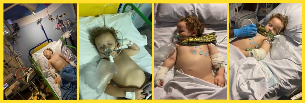 On 12th September 2021 my 3-year-old son Rapha tested positive for COVID. He suffered for 2 days then recovered. A month later he started with a fever. After 24 hours it was getting worse. I took him to the GP who sent him home with the advice to give paracetamol and ibuprofen until he improved. Two days later he deteriorated and a paramedic came. He ended up in A&E, who dismissed him the moment the doctor saw him with “it’s viral”. For 3 more days he continued with the fever but now he was also constantly crying in pain, sometimes screaming, his head hurt, his eyes hurt, his tummy hurt. He became doubly incontinent, his eye whites turned pink, his lips cracked and his tongue swelled. I took him back to A&E who rushed him through immediately. After many investigations and MDT meetings with the nearest hospital that had a children’s ITU, we discovered that he had developed PIMS-TS. At this point Rapha was not lucid at all and required morphine for his pain and oxygen therapy. The surgical team reviewed him due to how swollen he was and he had a CT scan of his abdomen. His spleen was enlarged and he had fluid building up. His platelets were being destroyed, his literal insides were inflamed and he was in so much pain.